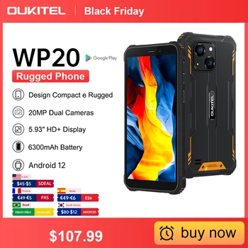Oukitel – téléphone portable robuste WP20, écran HD de 5.93 pouces, Smartphone, mémoire de 4 go et 32 go, batterie de 6300 mAh, Android 12, Quad Core de 20M -US $4 tous les US $30 dépensés sur la promo 4.8 571 Avis 1060 Commandes